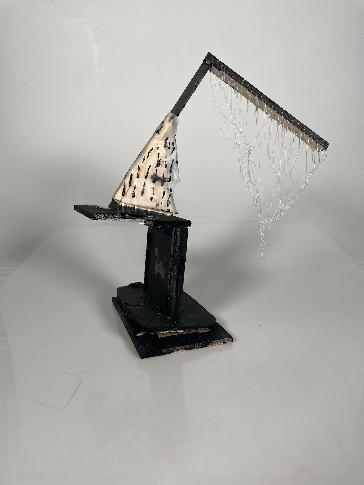 Hanging hot glue, gel medium, bristol wood, ink, tracing paper 8" x 6" x 5" Not what meets the eye wire, gel medium, ink, tracing paper 12" x 9" x 11" Do you see? 11" x 6" x 8" spray paint, wire, wooden dowels, paper mache, gel medium The sculptures were all inspired by nature and human nature. My intent was to visually communicate things in our everyday lives in an organic way that is not recognizable to the viewers. I wanted to focus on creating these sculptures to be intricate and exciting to look at for an extended period of time. I decided to include materials that I have not worked with very much to push myself to master something new. I felt the work was making a bit more innovation than I could have used if I had more time to work on it. I want to keep exploring these mediums further as I go through my next classes and on my own time. I want to learn more about organic sculpture and how to create things out of the ordinary. These ...